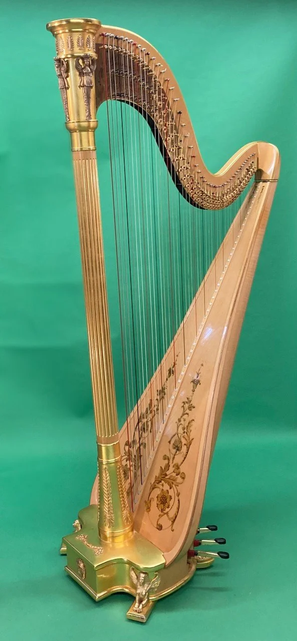 Professionally regulated, restrung and evaluated by a professional harp technician in June 2025.
